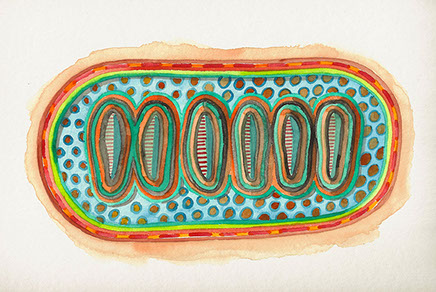"green cellular structure", Aquarell auf Papier,