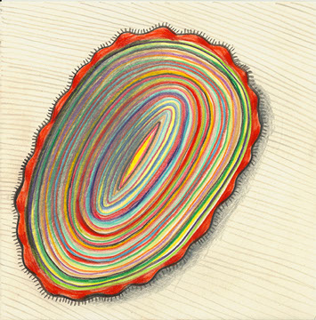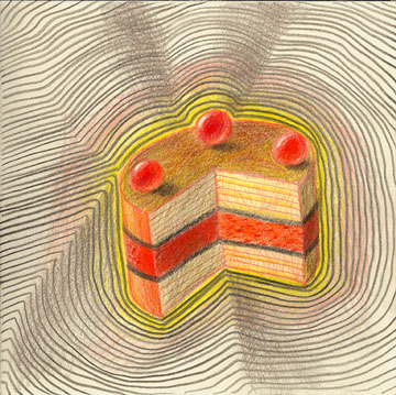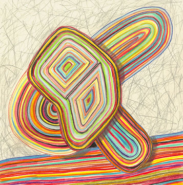 "boomerang sandwich", Farbstiftzeichnung auf Papier, 20 x 20 cm , ©matthias hennig 2013
