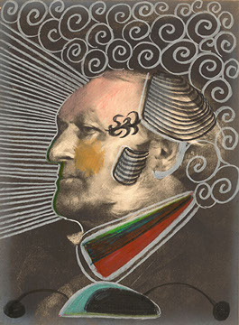 "Richard Strauss", Farbstiftzeichnung auf Fotodruck, 15 x 20 cm, ©matthias hennig 2013
