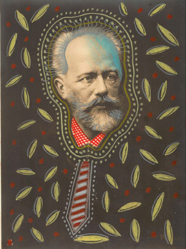 "Tschaikowski" , Farbstiftzeichnung auf Fotodruck, 15 x 20 cm, ©matthias hennig 2013