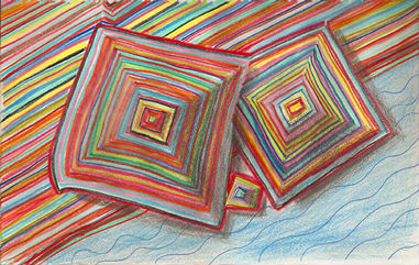 "three pyramids at the ocean", Farbstiftzeichnung auf Papier, 20 x 15 cm , ©matthias hennig 2013