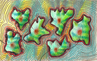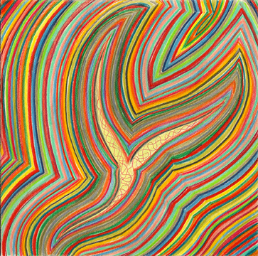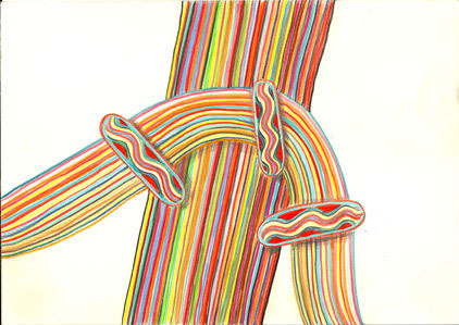 "dancing snakes", Farbstiftzeichnung auf Papier,