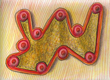 "boomerang sandwich", Farbstiftzeichnung auf Papier, 20 x 20 cm , ©matthias hennig 2013