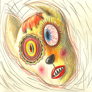 "cubistic fox with long ears", Farbstiftzeichnung auf Papier, 20 x 15 cm , ©matthias hennig 2013
