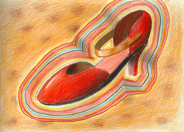 "schuhbiduu", Farbstiftzeichnung auf Papier,