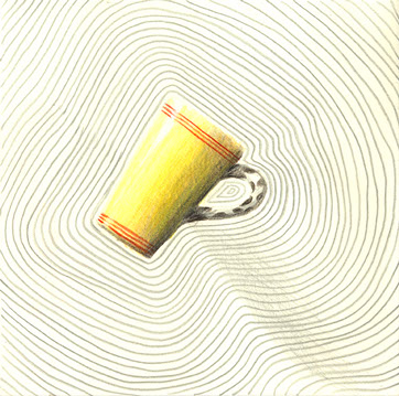 "yellow mug", Farbstiftzeichnung auf Papier,