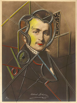 "Puccini" , Farbstiftzeichnung auf Fotodruck, 15 x 20 cm, ©matthias hennig 2013