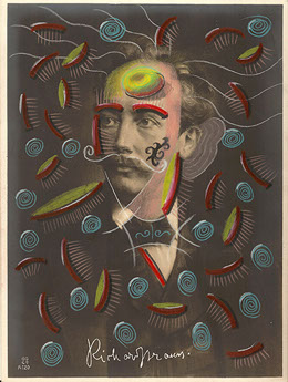 "Richard Strauss", Farbstiftzeichnung auf Fotodruck, 15 x 20 cm, ©matthias hennig 2013